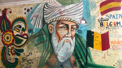 Sabah neredeyse gün doğumuyla Agra’dayız. Tac Mahal’e yürüme mesafede bu gece kalacağımız hostelimiz…. Güzel bir bahçesi, bahçesinde de keyifli bir kafesi var… Ve cafesinin adı Rumi! Evet yanlış okumadınız Rumi… Incredible India! Duvarındaki dev Mevlana kendi kültürümüzü hatırlatıyor bana… İşletmeci Türkiye’den geldiğimizi öğrenince hemen Mevlana’nın cafenin duvarını kaplayan görselini gösteriyor bize gülümseyerek… Sonradan da birçok yerde karşılaşacağımız gibi burada da Mevlana, saygı duyularak anılıyor…