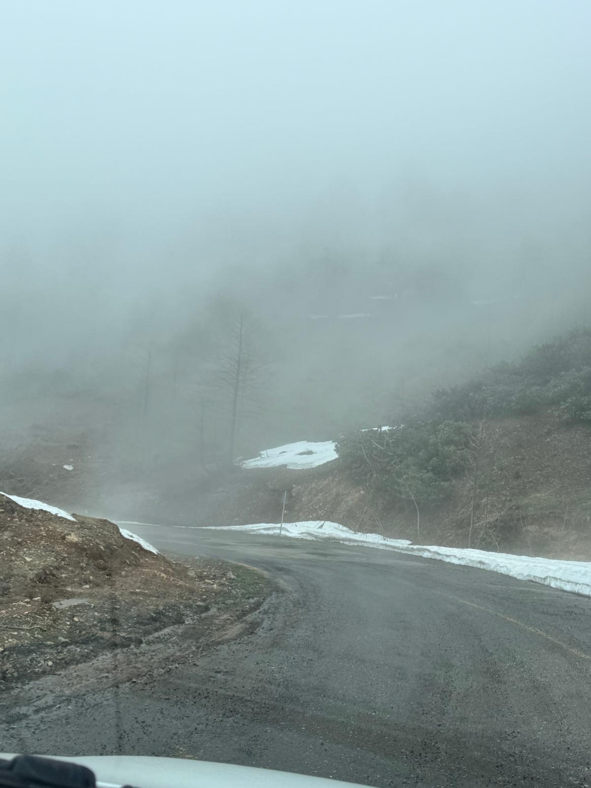 üçüncü dördüncü derken sonunda bir kadın sesi beni yanıtladı. Yolda olduğumuzu ve konaklamak istediğimizi söylediğimde “Burada bütün oteller kapalı henüz. Eğer yoldaysanız zirveye gelmeden hemen geri dönün. Heyelan riski var şu an orada” dedi. Biz Cenk’le önce birbirimize sonra etrafımıza baktık, zirvedeydık 🙂 Sakince yavaşladık, dar yoldan birkaç manevrayla geldiğimiz yöne doğru direksiyonu çevirdik. Doğa, müdahale edemeyeceğinizi bir kez daha hatırlatmıştı bize.