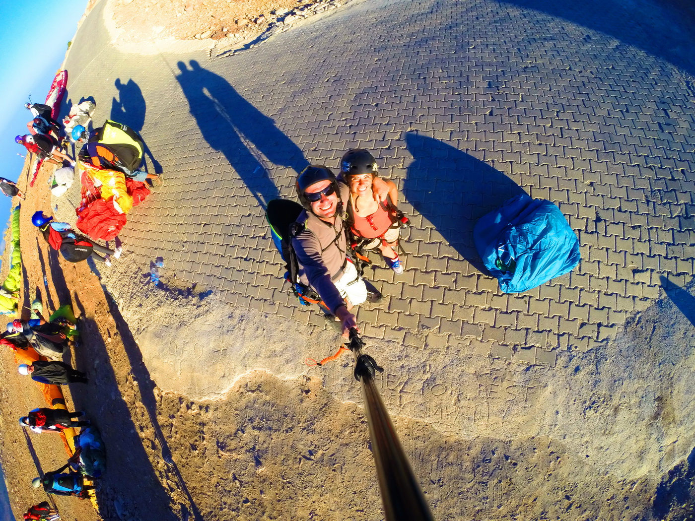 Zirvedeyiz… Atlayış alanı Tekirdağ’dan biraz farklı… Orada boşluğa doğru koştuğumuz alan daha genişken burada oldukça kısa bir mesafedeyken havalanmış olmamız gerekiyor ki öyle de oluyor…