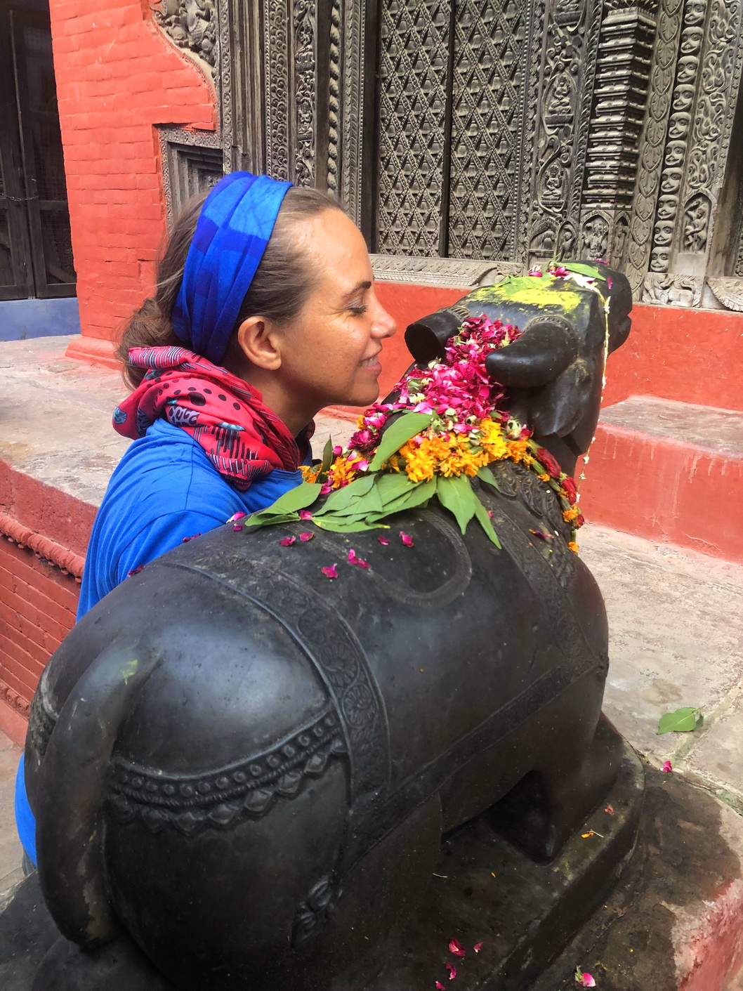 Yaşam ile ölüm arasındaki çizgi... Varanasi!Girişinde yer alan büyük çanı çalarak içeri girmemiz söyleniyor. Sonradan da gördüğümüz neredeyse bütün tapınakların girişinde küçük-büyük illa bir çan bulunuyor. Çanı çaldığınızda Tanrı’ya geldiğinizi haber veriyormuşsunuz… Tapınağın bahçesindeki Nandi, Shiva’nın kutsal hayvanı olan öküzü… Eğer Nandi’nin kulağına dileğini söylersen o Shiva’ya söyleyeceği, sonra da dileğinin hemen olacağına inanılıyor. Shiva üç büyük Tanrı’dan biri ve sürekli meditasyonda olduğundan Nandi O’nun aracısıymış… Fırsat bu fırsat hemen dileğimi kulağına fısıldıyorum tabii… Ay Hindistan gezisinde ne çok dilek diledim ben bile hatırlamıyorum 🙂